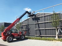 Bilder von unserem neuen Teleskoplader Manitou. Mit einer Reichweite von 15m können wir den Lader für Montagearbeiten